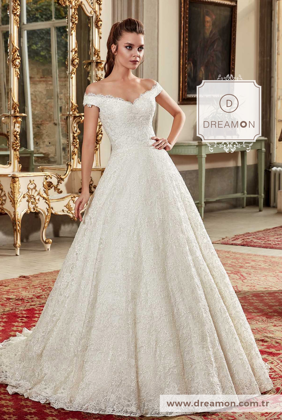 The very trendy ball gown model of the year is the last trend of the year with its ambitious shoulders resembling royal symbols, featuring elegant décolleté with hand-made lace-up lace trim with very small pearls. An exquisite choice with a completely different design.